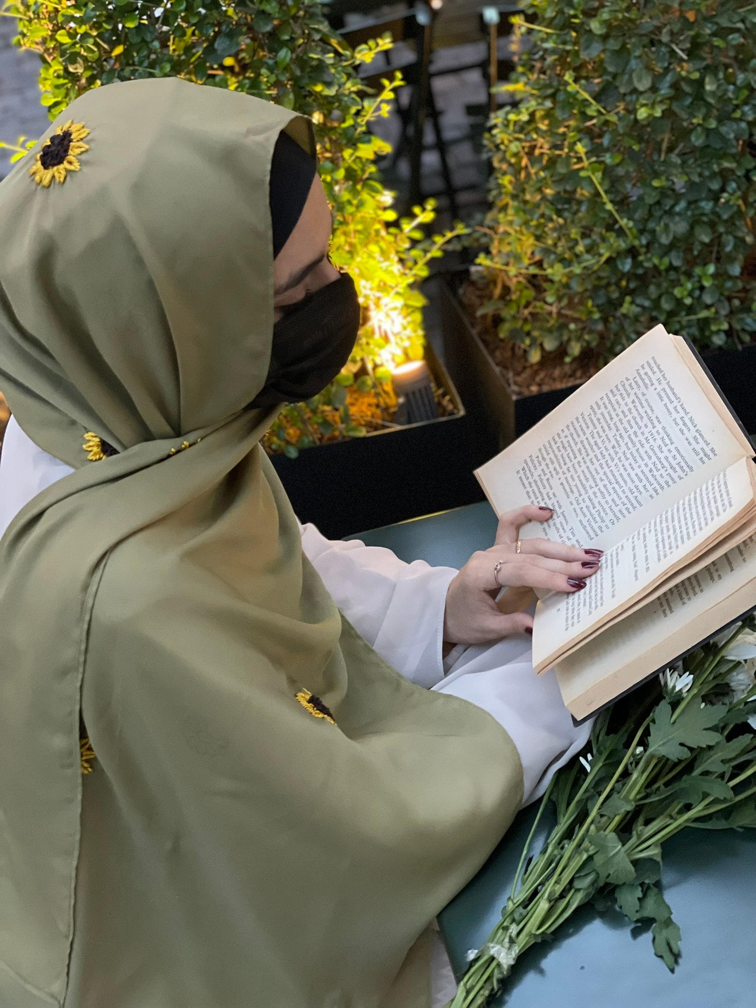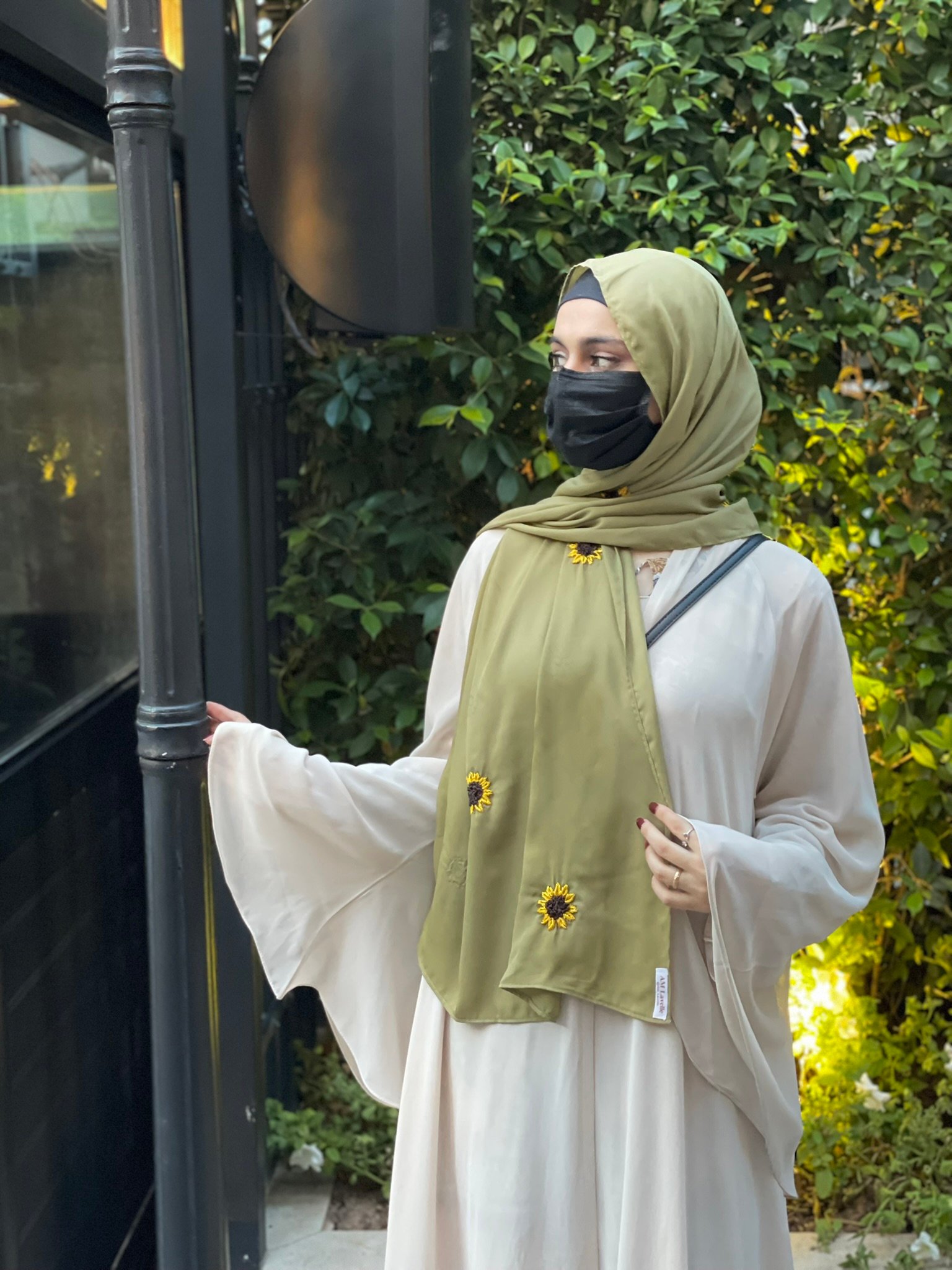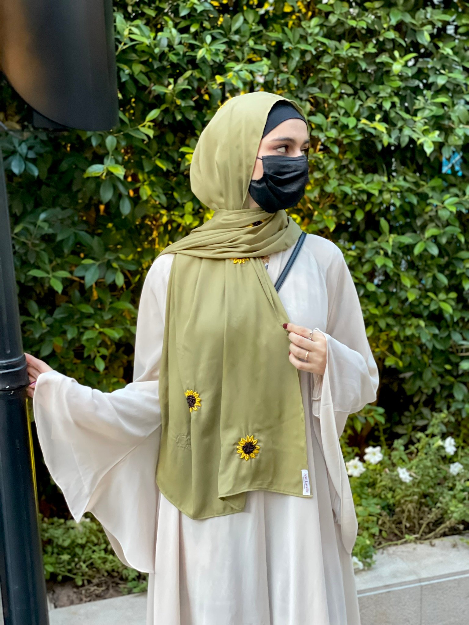 Description: Add a pop of sunshine to your wardrobe with this olive hijab sprinkled with sunflower motifs. It’s bold, playful, and uniquely fresh.